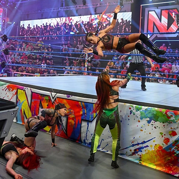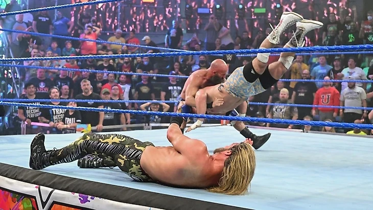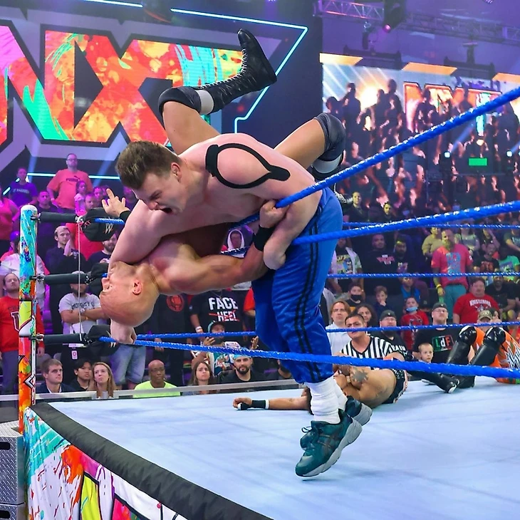 5) Титульный матч за командные чемпионства NXT между Imperium и MSK закончился без результата из-за атаки со стороны братьев Крид на обе команды. До матча у арены нам показали избитых братьев Крид, при этом они уже были избиты и кем именно неизвестно. Также до начала матча было интервью с самими командными чемпионами, которые это отрицали, ибо они не следуют такой подлой тактике избиения, которая присуща каким-то уличным хулиганам. Тут же объявились MSK, которые дали понять что Бартель и Айхнер несут полный бред про парней с улицы. Кстати тут же и стало известно, что именно MSK готовы заменить Крид сегодня в титульном матче (Я так и знал, что изначально всё-таки должен был состояться именно бой с братьями Крид за титулы, но букеры NXT почему-то предприняли вот такую слишком завуалированную попытку оттянуть встречу Империум и Крид до Stand and Deliver, хотя могли бы просто выдать простой анонс и на этом всё. Впрочем таковой способ также имеет право на жизнь, ибо это даст сюжетный буст для матча и скроет некоторые потенциальные неурядицы в самом матче). Бой продлился чуть больше 5 минут и не успел в целом разогнаться, а во время атаки один из братьев слегка поспешил с атакой на Айхнера и тот не очень хорошо приземлился на голову, информации о возможной травме ещё не было (Личная оценка — 2,5; видимо намечается трёхсторонний поединок для Stand and Deliver, учитывая что Крид также атаковали MSK, которые без согласования с ними заменили их на сегодняшнем выпуске. Впрочем MSK могут и уйти в сторону и до грядущего PPV, чтобы полностью сосредоточиться на противостоянии с Империумом);