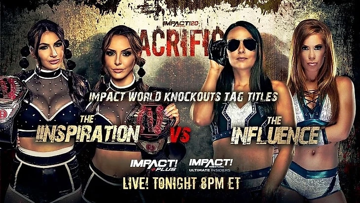 3) The IInspiration (Кэсси Ли и Джесси МакКей) против The Influence (Мэдисон Рейн и Тенилль Дэшвуд) — титульный поединок за женские командные Нокаут-чемпионства IMPACT.