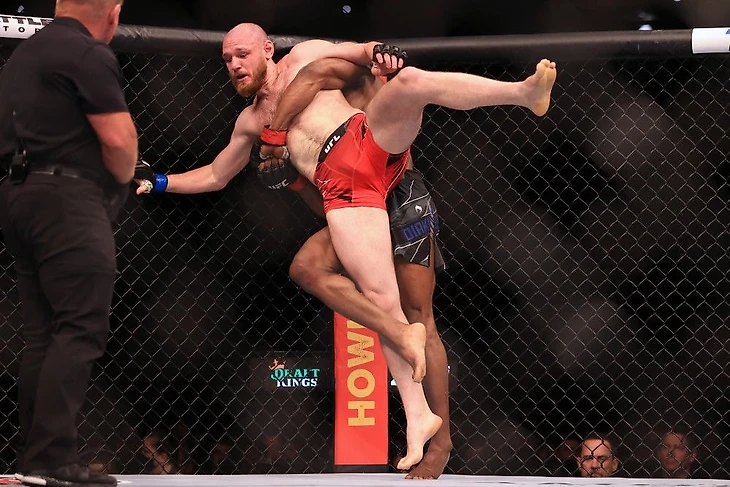 Главное разочарование турнира. Борщёв бодро начал карьеру в UFC. Почти что в киношном стиле. Пройдя тяготы и лишения, он таки смог закрепиться в сильнейшей лиге мира. В дебюте победил нокаутом, сорвал овации, но посеял сомнения относительно качества свой борьбы. Вернее сказать, защиты от неё. Сегодня все вопросы разом были сняты. Средний по меркам дивизиона Диакисе не стал устраивать битву в клетке. Он сразу пошёл бороться с кикбоксёром. Первое время Слава держался, что было сил. Но силы быстро покинули. Примерно со второго раунда бой можно было смотреть спиной, занимаясь домашними делами. Сценарий не менялся ни на дюйм: Марк всеми силами держит соперника на земле. На лице Борщёва читается усталость и обречённость. Итог - первое поражение россиянина в UFC и безлимитный абонемент в зал борьбы.