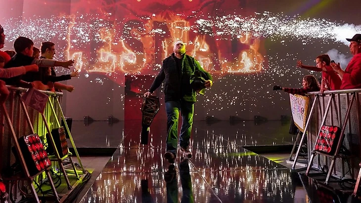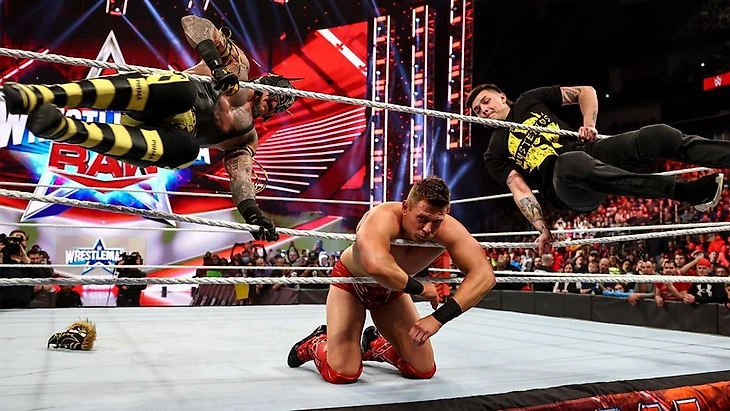 Опять-таки достаточно классический сегмент, который, по логике, должен был вызвать громкую неодобрительную реакцию публики (а именно Пол в маске Мистерио), но, имхо, не вызвал достаточно негатива. В общем, тут был классический Миз со своим классическим хильским промо, Логан Пол, который не вызвал достаточно буканья, ну и действия Доминика, которые привели к его удалению за кулисы. Типичный сегмент, который подвел нас к типичному матчу на еженедельнике.