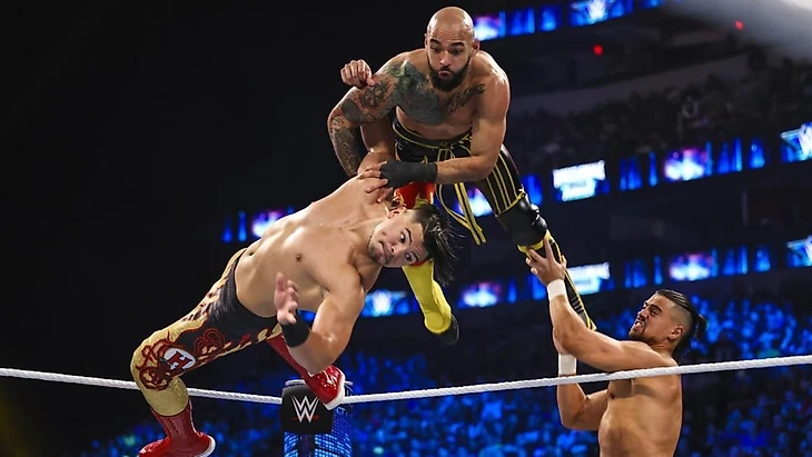Победители: The Usos и Остин Тиори (победу принёс именно Тиори через ATL на Финне Балоре).