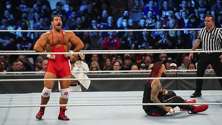 — Следом был большой ролик о противостоянии Романа Рейнса и Брока Леснара, начиная с дороги к Royal Rumble и прямо по пути к WrestleMania 38 (просто все кадры этого ролика были взяты из кадров всех сегментов именно этого года и именно по пути к Мании до и после Royal Rumble);