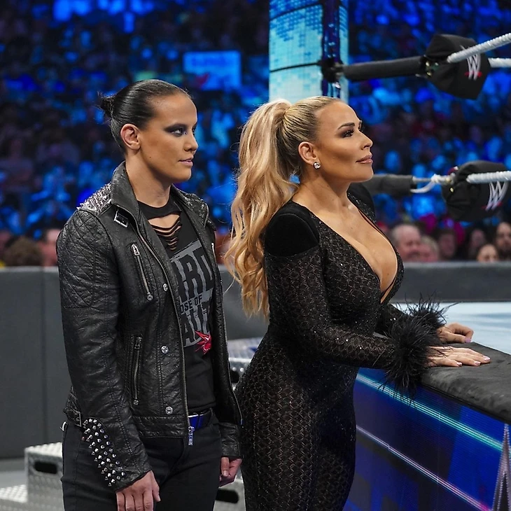 Я не очень понял сути появления остальных участниц титульного многосторонника за женсике командные титулы на Мании (собственно Натальи с Шейной Бэйзлер и Рии Рипли с Лив Морган), но они видимо просто оценивали оппоненток и всё.