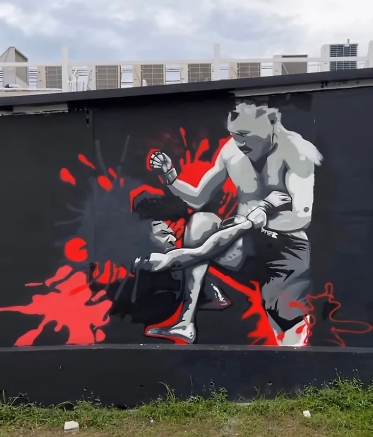 Местный художник решил поддержать бойца клуба «Архангел Михаил» в преддверии реванша. Он изобразил финальный эпизод встречи, который и дал старт невероятной истории противостояния спортсменов. Работа ещё недоделана. Художник обещает закончить в ближайшее время.