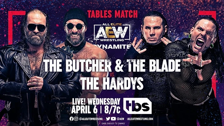 Джефф и Мэтт Харди победили Мясника и Клинка в матче со столами (11:54).