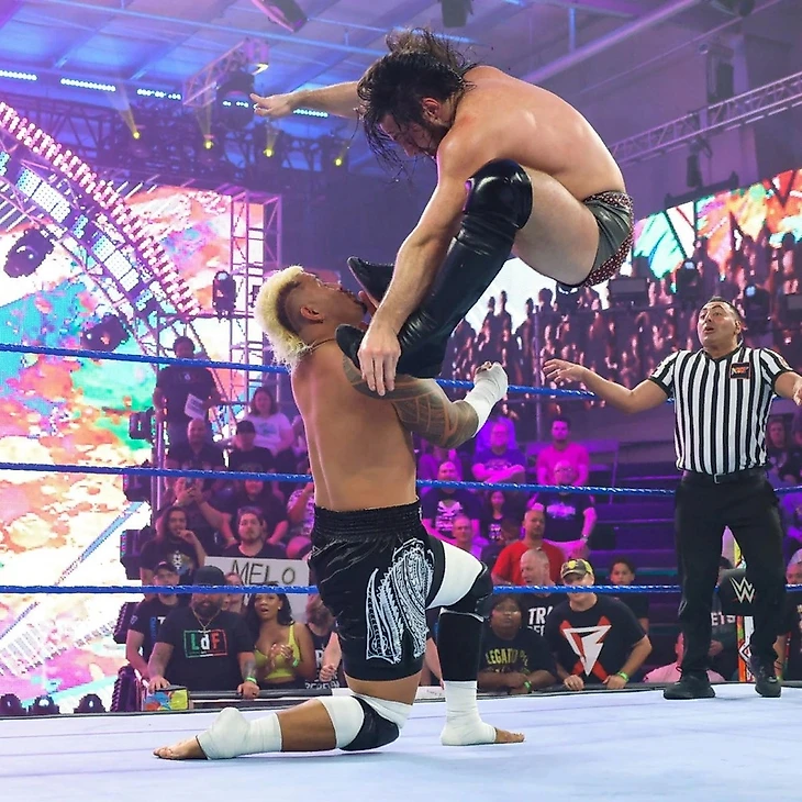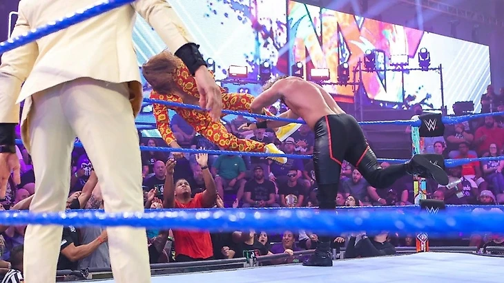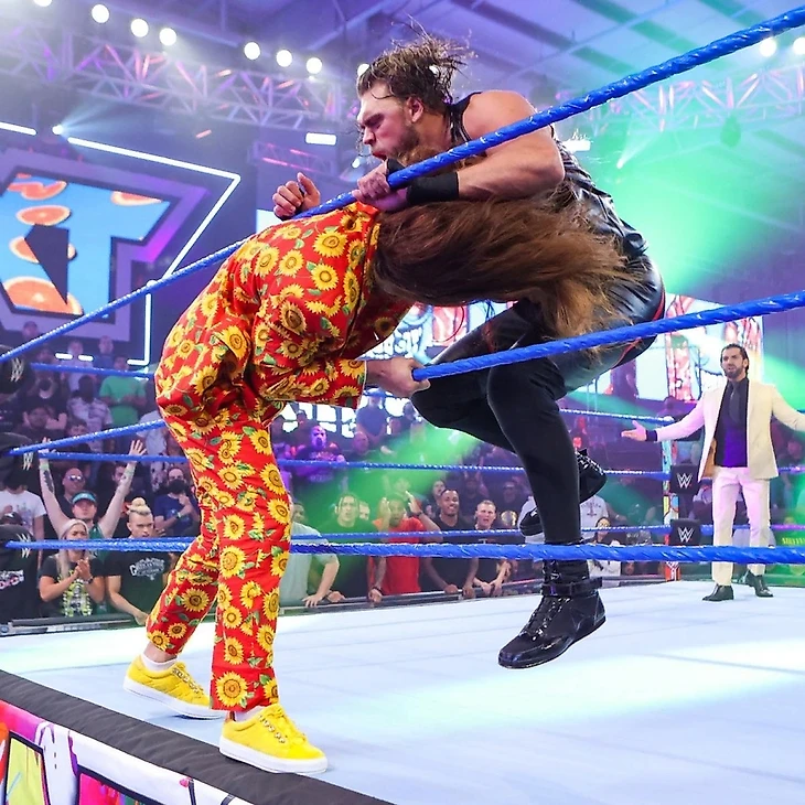 Матч получился не совсем скучным, но и явно не выдающимся. Роуз была посредственна, Дакоте вытащить её не получилось, всё проходило ещё и по банальнейшей схеме титульных защит Мэнди. Она вообще надоела мне в качестве чемпионки даже больше, что Роман Рейнс. И да, это третий матч подряд, в котором кто-то побеждает, когда его соперника отвлекают — креатив так и прёт из букинга матчей этого выпуска. Шансов у Дакоты и так было мало (вероятнее всего она вместе с Венди станет вновь командной чемпионкой), так ещё и заставить меня поверить в обратное у матча не получилось (в оупэнере же на секунду сомнения появились, для сравнения).