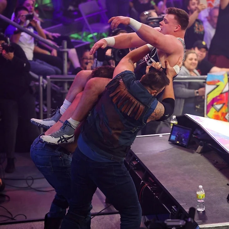 — Братья Крид (1) победили Грейсона Уоллера и Сангу (4) после тейкдауна и слайдинг клоузлайна от Джулиуса на Санге (19:48);