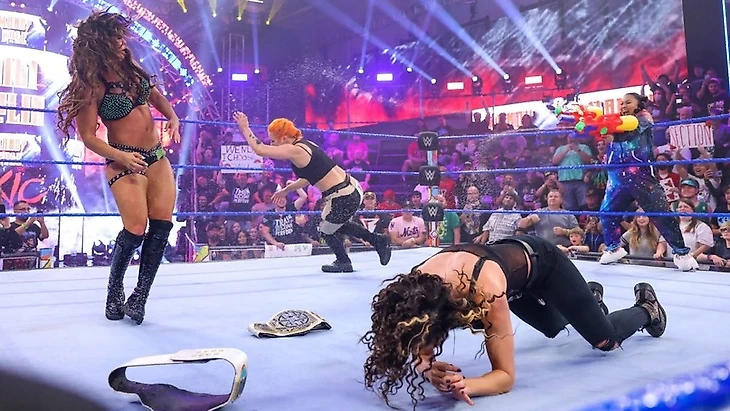 На удивление получился классный сегмент, хотя я был первоначально негативного мнения о нём, всё же Кора далеко не так хороша на микрофоне как хотелось бы. Но с момента появления Натальи всё изменилось. Реакция толпы была очень громкой, фанаты помнят, как та выступала на NXT в 12-14 годах, в том числе участвовала в матчах против Шарлотт Флэр. И эмоции её выглядели вполне настоящими, искренними, благодаря чему момент вскрытия её обмана оказался ещё эмоциональнее и неожиданнее. В общем, получилось здорово и не так банально, как если бы она просто начала негативно отзываться о Коре сразу.