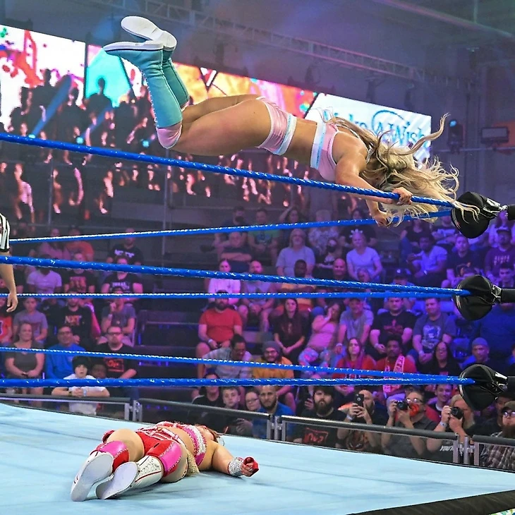 Какой-то невразумительный матч. Хоть что-то смогла показать только японка, за её исполнением, особенно за дропкиками, было приятно наблюдать. Тиффани лучше пока не становится, хотя я и был приятно удивлён в прошлом её матчем с Айви Найл. В этом же удивляться было не чему. Японку откровенно подложили под зелёную соперницу. Хоть я и не фанат её, конечно, но ничего хорошего в этом не вижу.