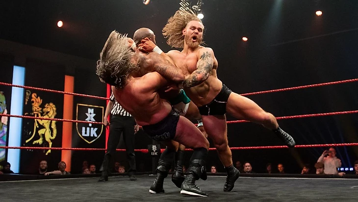 Доброго времени суток, Ассалому Алейкум, дорогие друзья! На связи Юлий Марков, и я здесь снова для того, чтобы разобраться с «долгами». Последние 2 недели обзоры NXT UK как-то не радуют своим появлением, и, вполне возможно, они не очень-то и нужны, но тем не менее, имхо, раз уж когда-то начали обозревать, давайте продолжать. В общем, на очереди сразу 2 выпуска. Первый (от 14 апреля) порадовал командником в открытии, женским матчем и потенциально интересным мэйн-ивентом с участием Теомана и Эй-Кида, а главным событием второго (прошедшего в последний четверг) стал «исторический матч за командные титулы», как назвали его сами WWE, в котором Moustache Mountain защищались от Оливера Картера и Эштона Смита в бою до 2 удержаний. Давайте разбираться, прям как когда-то давно, когда NXT UK только начал выходить, и я обозревал по 2 эпизода сразу, потому еженедельно WWE выпускали 2 шоу сразу.