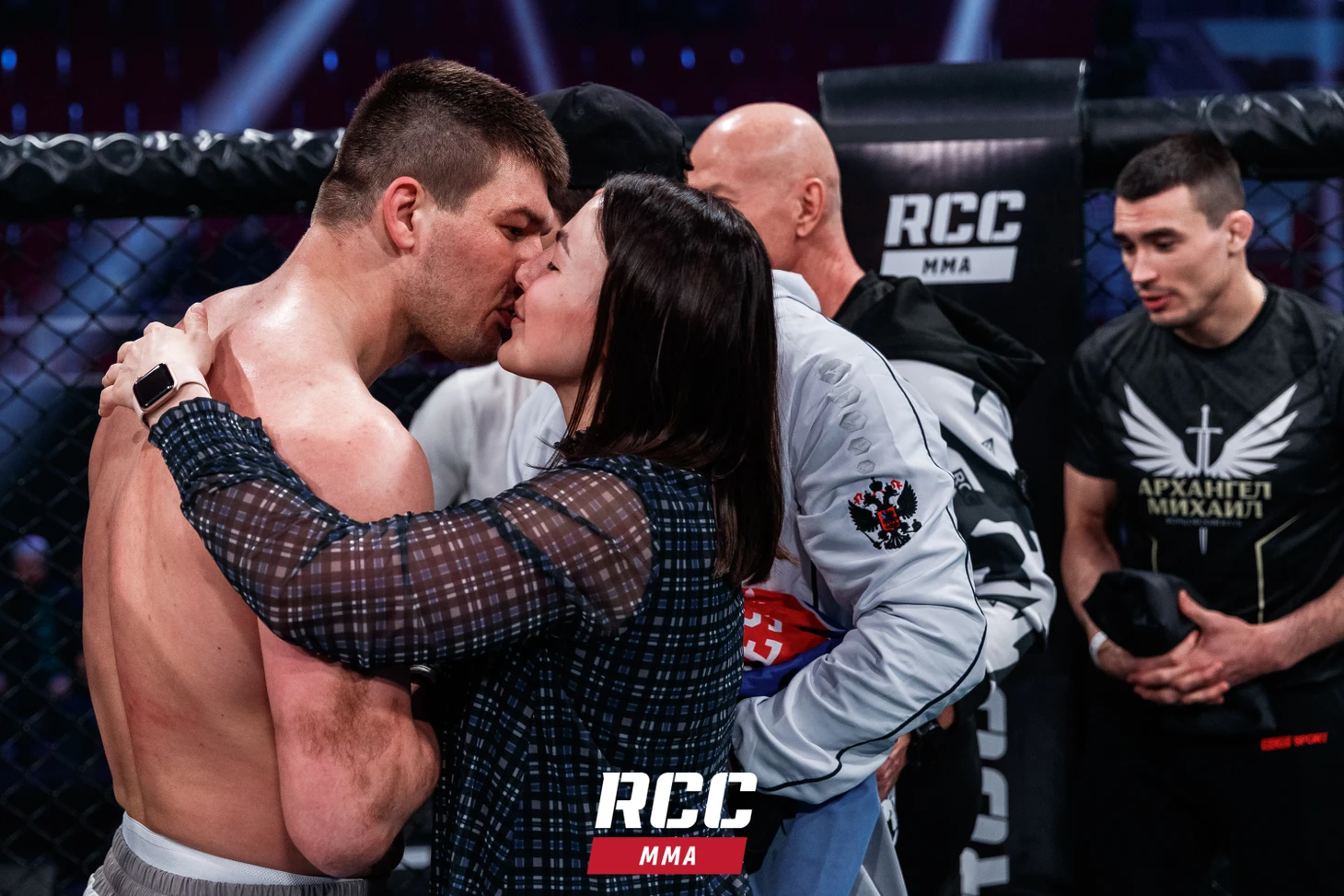 Николай Коваленко финишировал Дастана Элдиярбека Уулу за 53 секунды. Супруга победителя выбежала в клетку