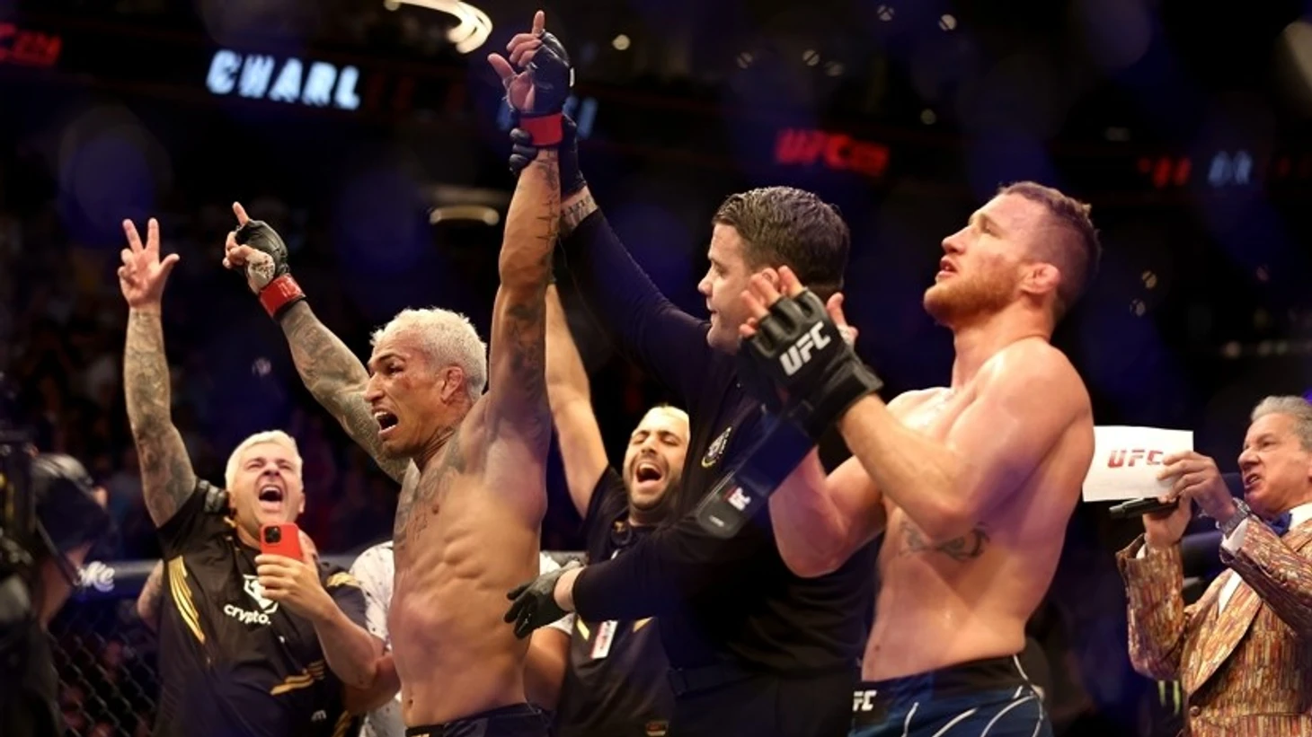 А тем временем правая Чарльза достигает цели, Гетжи падает. Оливейра мгновенно ныряет в свою стихию. После непродолжительной смены позиции на полу тугой удушающий захват обвил шею Джастина, как питон. Американец сдаётся. Чарльз вопреки обстоятельствам снова доказывает, что он - лучший. Можно подкрутить стрелки весов, угрожать, забрать пояс. Но одного отнять у этого мужественного бразильца нельзя - его чемпионский характер. Это дороже любого золота мира. Попробуйте отобрать.