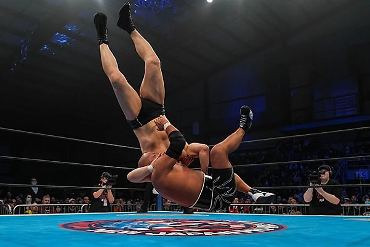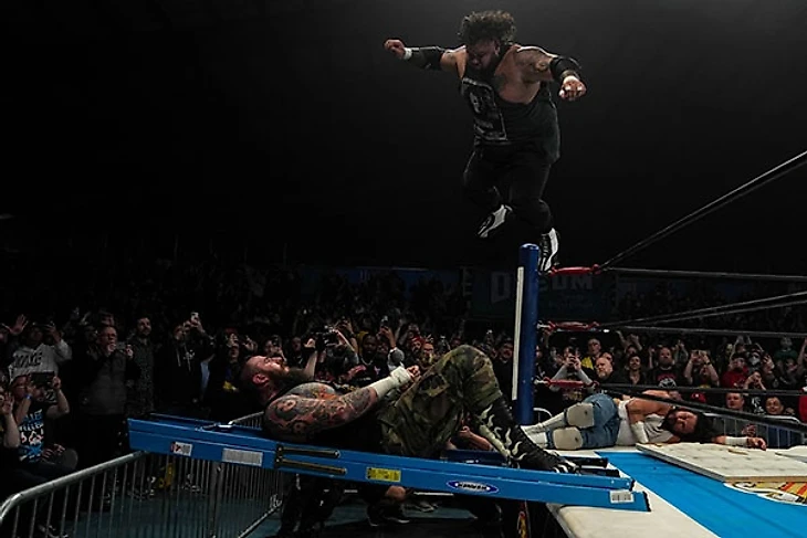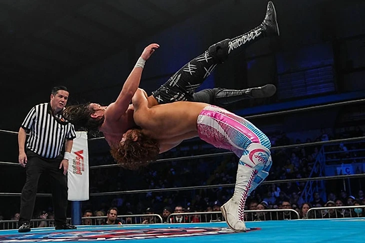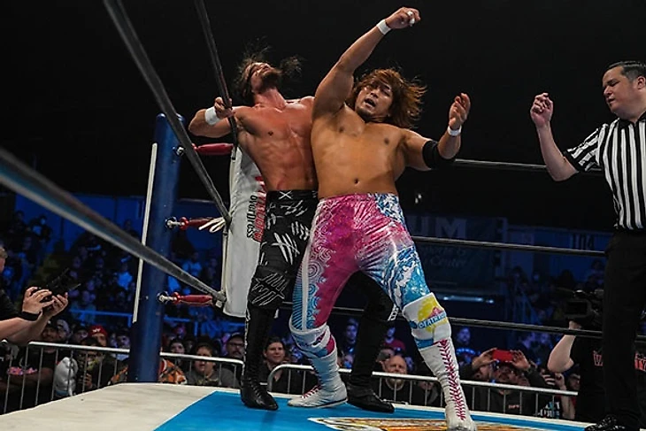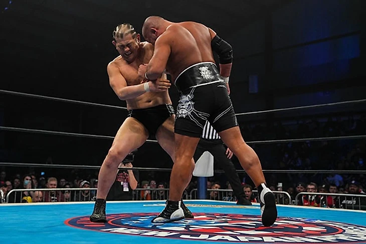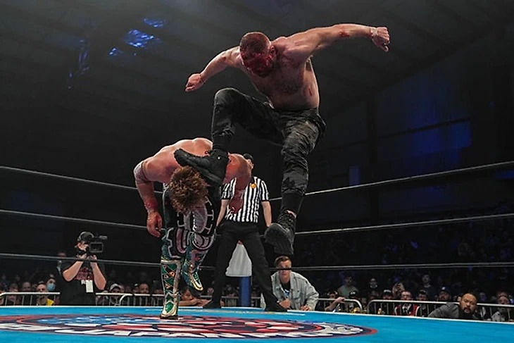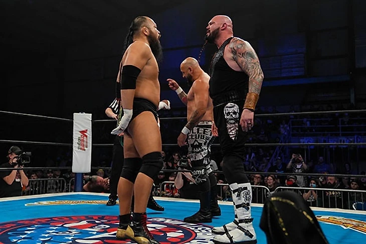 5) FinJuice и Броди Кинг победили TMDK (ДЖОНА и Шейн Хейст) и Бэд Дьюд Тито в матче по правилам Chicago Street Fight. Сам матч, к сожалению, не оправдал своих вложений и затрат. В первую очередь — из-за медленного темпа в принципе. И это с таймингом чуть ли не в полчаса времени, что позволило стать бою самым длительным матчем всего PPV. Да и в целом темп был довольно тухлым, отчего между ключевыми спотами и взаимодействиями обеих команд были большие паузы, когда-то в 2-3 минуты, когда-то до 5. И это в матче, где нет никаких ограничений в правилах, да и по формату это как торнадо-поединок без передачи тэгов и прочих тормозящих факторов. Оценка от мистера Мельтцера была несправедливо низкой, но и понять это я могу, справедливо отмечая таковую реакцию (Личная же оценка — 3,5). После этого матча были слухи и разговоры о том, что Робинсон после этого шоу задумал покинуть NJPW и даже взять небольшой перерыв. Только вот через 2 недели, на Wrestling Dontaku Джус совершил своё возвращение как сольный игрок... став новым членом BULLET CLUB, атаковав нового чемпиона США IWGP в тяжёлом весе Хироши Танахаши. В дальнейшем был анонсирован Fatal 4-Way-поединок за титул при участии Танахаши, обновлённого Робинсона, Уилла Оспрея и Джона Моксли для нового PPV в Вашингтоне — NJPW Capital Collision от 15 мая;