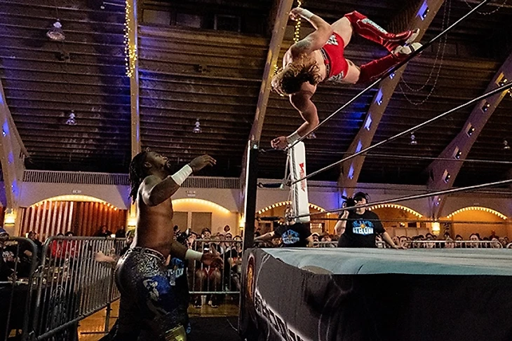 Личное мнение автора обзора: видя матч двух хайфлаеров (я уж помню стиль Шейна времён Lucha Underground, не говоря про его выступления в WWE и тем более сейчас), ожидал в целом увидеть спотфест. Но Шейн и Блэйк в этом году взяли курс на сбалансированное поведение на ринге — от спотов и акробатики они не отказались, но стали уделять внимание более жестокому стилю ведения боя. Тут они и вовсе это дело между собой совместили с упором на модель поведения: вроде как оба фейсы, но Стрикленд решил примерить образ разбитного хулигана и подначивал Кристиана, чем негласно выбесил его и тот принялся лихо так жестить, не давая большого пространства для доминации во всём матче. Шейн же увидел во всём этом особый азарт и повысил ставки, рассчитывая всё-таки довольно быстро сразить топ-звезду GCW. Быстро не вышло и пришлось лихо так попотеть, ибо Блэйк отказывался так просто сдаваться. Настолько, что в самом конце матча Шейн провёл серию силовых манёвров и без ключевых финишеров победил после не финишного, но довольно убедительного по своей силе и отдаче кика в затылок. Так что в целом для достаточно рандомного матча и вывески в целом, пусть и такой яркой, бой выдался более чем смотрибельным и в первую очередь не миллионами спотов и прочих выкрутасов. Жаль конечно, что Кристиану никак не начнут оформлять продвижение через победы, а Стрикленду надо было как-то выравниться после досадного поражения от Джея Уайта.