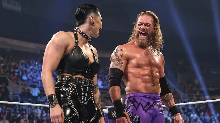 ЭйДжей начал работать над ногой оппонента, но получил бэкбрейкер, и Эдж замкнул кроссфэйс, который Стайлз реверсировал в Calf Killer. С большим трудом Эдж отбился, но ЭйДжей вновь применил захват, и легенде пришлось тянуться к канатам, с чем он справился. Тогда Стайлз провел немецкий суплекс, но Эдж схватился за тот самый тернбакл и сорвал его. Отбившись от еще одного броска, канадец зашел на гарпун, однако ЭйДжей увернулся, и Эдж влетел головой в крепление канатов, которое сам же до этого «оголил». Сворачивание от Стайлза, но лишь до 2. Эдж ответил гарпуном из неоткуда, но и его для победы было мало. Следующий гарпун Стайлз встретил коленом в голову, провел фронт суплекс на канаты, и сразу же вышел на Styles Clash. Удержание, и Эдж вырвался на счет 2. Тогда «Феноменальный» решил провести Phenomenal Forearm, причем аж с третьего каната… но на рампе появился Дэмиэн Прист, который настаивал, что на рингсайд он шаг еще не сделал, так что не считается. Со спины его атаковал Финн Балор. Он загнал Приста в ринг, нанес несколько ударов, продолжив драку на рингсайде, на которой все свое внимание рефери и сосредоточила. Тем временем на апроне возникла фигура девушки, которая сбросила Стайлза с канатов. Эдж тут же применил кроссфэйс, и как ЭйДжей не старался, не сумел дотянуться до канатов, и «уснул». Эдж одержал техническую победу удушающим (то есть, не отстучал, но судья присудила победу Эджу). Внезапная помощница Эджа поднялась на ринг и встала на колено перед канадцем. А затем сняла капюшон. Да, это Рия Рипли, которая, кстати, еще и в брюнетку перекрасилась. В Judgement Day теперь трое.