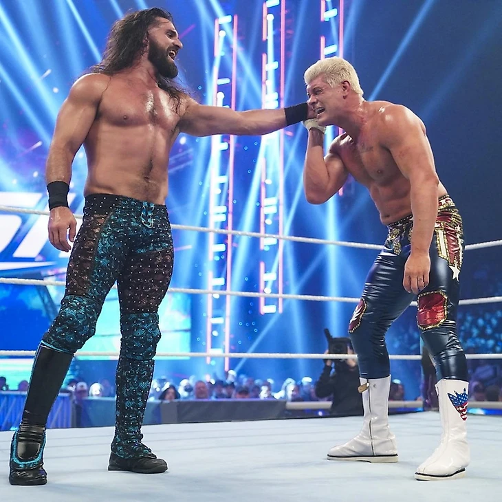 Коди ответил тщетной попыткой того же маневра, но Сет сдюжил и провел связку из 2 rolling elbows и фэлкон эрроу до 2. Бакл бомбы Роудс избежал, но Роллинс все равно умудрился ее провести, прервав попытку спрингборд атаки, добавив фрогсплэш с третьего каната до 2. Phoenix Splash Сета цели не достиг, и Роудс «порадовал» его суперкиком. Подняться на угол, правда, Роллинс ему помешал, проведя суперплекс. Фэлкон эрроу Коди реверсировал в Cross Rhodes, однако нога Сета оказалась на канате. Рестлеры снова покинули пределы четырехугольника, где «Американский Ночной Кошмар» избил противника у комментаторского стола, и провел-таки мунсолт с третьего каната по возвращении в ринг, но мимо, и Сет шарахнул Pedigree до 2. Роллинс сказал оппоненту пару ласковых, провел серию Кавада киков, а потом и вовсе зашел на серию джебов в стиле Дасти. Bionic Elbow, правда, Коди реверсировал в Cross Rhodes, но еще один Роллинс прервал, только для того, чтобы Роудс попытался выйти на Vertebreaker. Справившись и с ним, Сет вышел на сворачивание, однако Коди реверсировал его в собственное сворачивание, еще и за трико придержав Роллинса. Роудс победил, а Сет был в шоке и даже поругался с рефери.