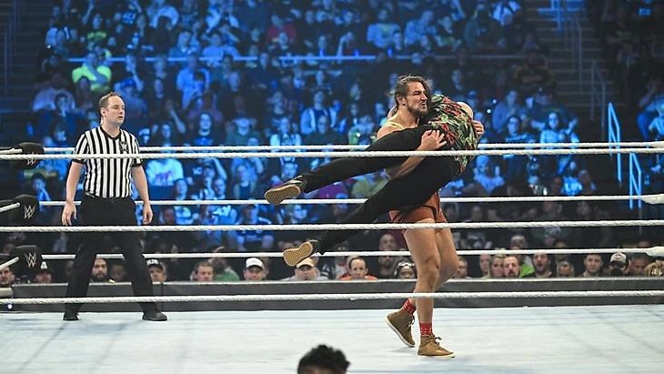 Это было приблизительно на уровне их же матча на WrestleMania. Этот, имхо, был даже получше и больше похож на рестлинг-матч. В общем, эта встреча Омоса и Лэшли — это ни в коем случае не хороший матч, но именно то, чего стоило ожидать, и настолько, насколько может быть грамотным бой Омоса, этот поединок был грамотным. Победа Омоса, наверное, учитывая историю, это тоже правильное решение, хоть оно мне и не нравится, как и тот факт, что эта вражда, скорее всего, продолжится.