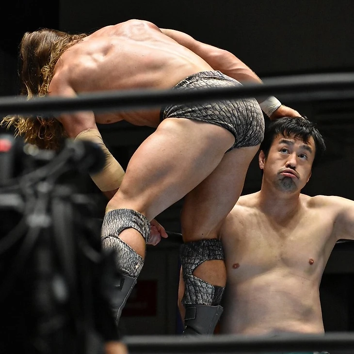 На самом деле, имхо, объективно оценивать, насколько «комедия» Тагучи это хорошо или плохо, сложно. Публике на арене, например, некоторые споты показались забавными. Даже когда на мой вкус рестлеры начали перебарщивать с этим «butt stuff», публика все равно «выкупала» его. В общем, я не буду оценивать «комедию», ибо это субъективно. Объективно же я могу отдать должное за попытку рассказать в этом матче историю, ну и как-то дать выдохнуть фанатам после двух очень насыщенных поединков. Рестлинга во встрече Рюске и Кларка было не так много, как хотелось бы. Однако, Коннорс одержал наконец свою первую победу и в турнире, и в Японии вообще, причем на великой арене, еще и победив ветерана с серьезными заслугами. По-человечески я за него рад. Ну и Тагучи, конечно, это Тагучи, он в каком-то смысле как Тору Яно в дивизионе полутяжелого веса, в смысле того, что он вполне может победить кого угодно, но и проиграть кому угодно, причем сделав это так, чтобы не навредить сопернику в случае своей победы, в то время как поражения даже людям, вроде Коннорса, не то, чтобы вредят Рюске.