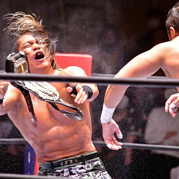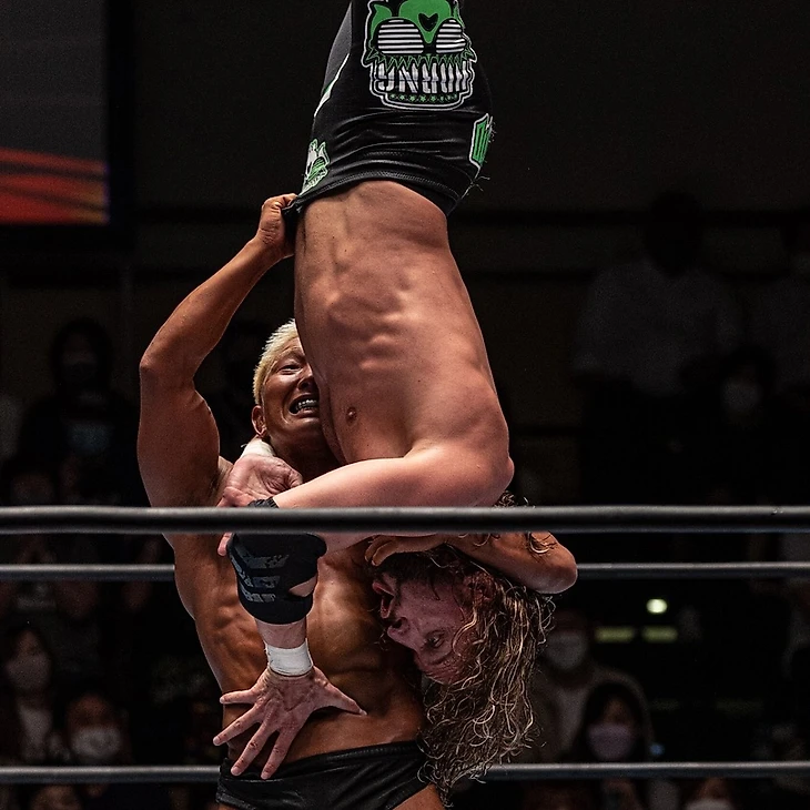 Очевидно, колено Такахаши не успело восстановиться после матча с Канемару. Естественно, ЙО начал работать над этим самым коленом, что принесло ему преимущество на старте. ЙО провел дропкик, применил болевой, а затем атаковал ногу оппонента за пределами ринга. Претерпев все это, Хирому провел харриканрану, добавив дропкик в спину соперника, а потом еще и коронный шотган дропкик с апрона. В четырехугольнике последовал Falcon Arrow до 2, и ЙО вернулся к атакам ноги, которые «разбавил» парочкой немецких суплексов. Чтобы выиграть себе немного времени, «Time Bomb» провел собственного «немца», а затем и Wheelbarrow Flatliner и еще пару атак. Противник улучил момент для dragon screw, а затем сумел провести связку из суперплекса и Falcon Arrow в стиле Сета Роллинса до 2. Жесткий леглок последовал, и вполне верилось, что Хирому сдастся, но он дотянулся до канатов. Размены продолжились, и Такахаши преуспел в одном из них, проведя хэдбатт, суперкик и лэриэт до 2. Voctory Royal, и ЙО собрался на очередной немецкий суплекс, но только до 2. Некбрейкер и бэкбрейкер от ЙО последовали, а затем он провел и, видимо, обновленную версию Direct Drive, которая больше похожа на Butterfly Suplex, чем на Butterfly DDT. Этот прием и принес ЙО первую победу над Хирому в карьере. В послематчевом промо победитель коснулся того, что некоторые люди обвиняют его в отсутствии эмоций. Но, дело в том, что ЙО такой на самом деле, ему сложно проявлять эмоции. А профессиональный рестлинг, по его мнению, это место, где ты можешь быть собой настоящим. И вот такой ЙО настоящий. Ему сложно проявить эмоции, но он хочет, чтобы зрители знали: он счастлив сегодня победить.
