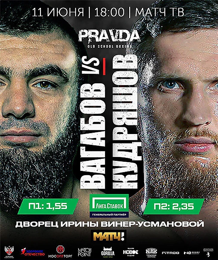 Но неожиданно Кудряшов вернулся в бокс – на площадке PRAVDA Fighting Championship. Это относительно новый промоушен, который зародился в поп-ММА и стал первой российской лигой в ютубе, где хайповые бойцы дрались не на голых кулаках и не в ММА, а в боксе. Лига стилизует поединки под олдскульный бокс – этому способствует и ринг, и перчатки участников. А турнир с участием Вагабова и Кудряшова показывали уже не в ютубе, а на «Матч ТВ».