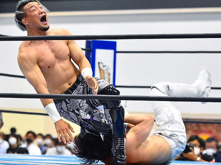 Матч продлился чуть меньше 10 минут, и в нем была интрига: сумеет ли ДОУКИ продолжить тенденцию улучшения своих результатов в BoSJ или просто повторит свой прошлогодний рекорд. После жесткого обмена ударами между рестлерами, ДОУКИ полетел за пределы ринга планчей, добавив к ней DDT и жестко выглядевший сентон с третьего каната. По возвращении в четырехугольник представитель Suzuki-Gun вышел на Italian Stretch #32. Мастер отбился, вернулся в поединок бэкбрейкером, и ДОУКИ отправился на рингсайд, где получил жесткий дайв от визави. Передохнув немного, рестлеры вернулись в ринг, и ДОУКИ провел энзигури с суплексом до 2. Мастер ответил на это дело симпатичным немецком суплексом, и снова угодил в Italian Stretch #32. Мастер справился с болевым и на этот раз, проведя TTD. После еще одного обмена ударами, ДОУКИ зарядил жесткий лэриэт, добавив к нему Daybreak до 2. Реверсировав следующую атаку, Уато вышел на Vendeval, от которого соперник был вынужден отстучать.