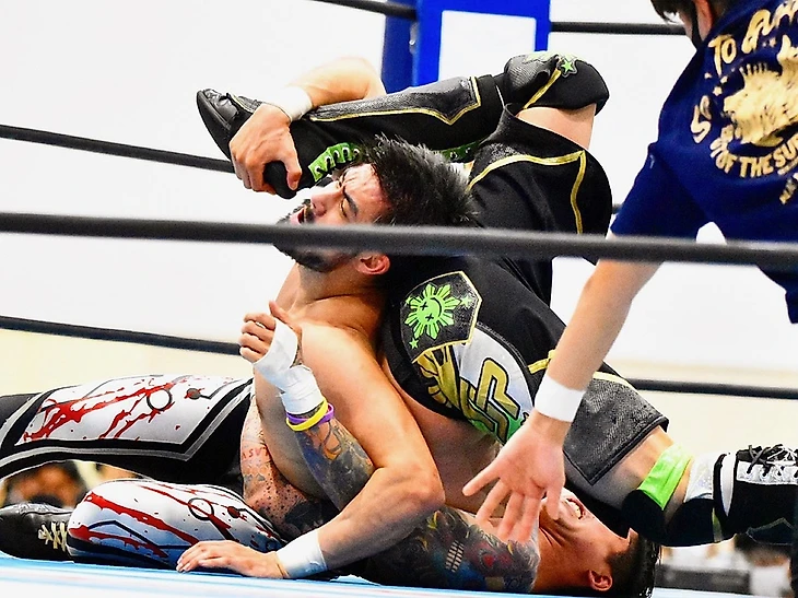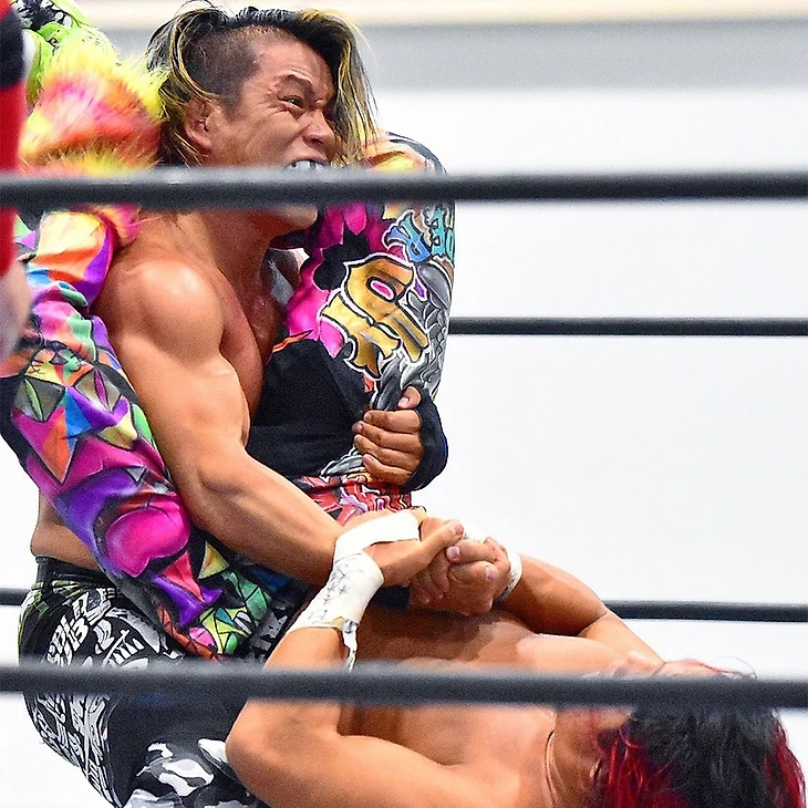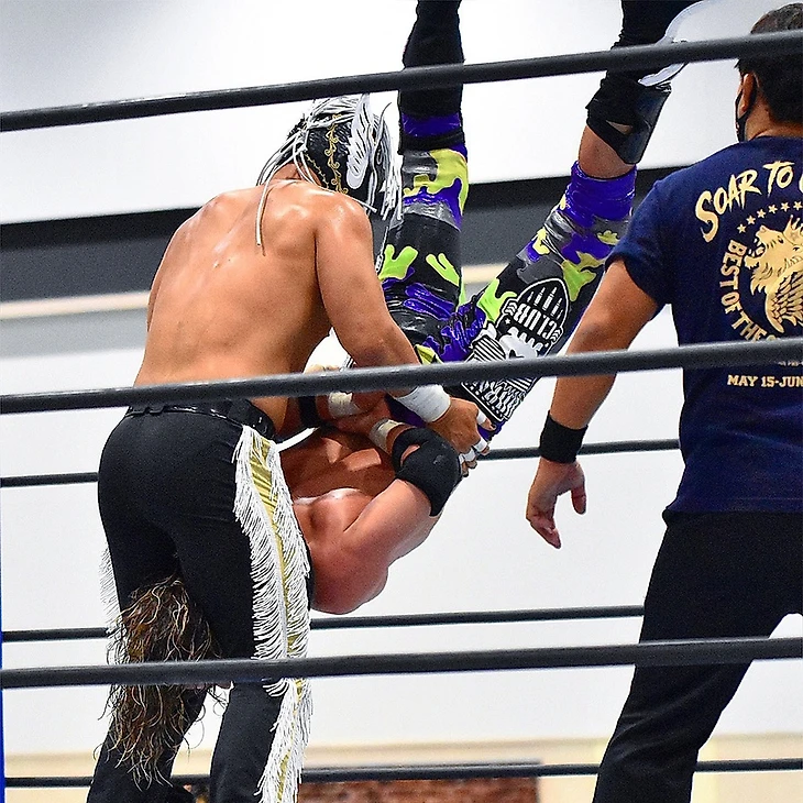 Как и другие 6 матчей на шоу, этот не имел турнирного значения, но был принципиальным. Все мы знаем предысторию. Гонг прозвенел, ШО укатился за пределы ринга, взял микрофон и сказал, что не будет драться сегодня, чтоб не предоставлять бывшему командному партнеру удовлетворения. И ушел за кулисы. Судья начал отсчет, и ШО в итоге, конечно же, вернулся в четырехугольник, где получил несколько атак, и снова отпраился на рингсайд. ЙО последовал за ним, и командный чемпион NEVER среди трио отвлек судью посторонним предметом, а сам атаковал противника молоточком для гонга. Затем он еще и впечатал ЙО в стену в зрительском зале, но выиграть по отсчету не получилось. Тогда рестлеры стали обмениваться ударами предплечьями, ШО провел несколько жестких киков, но ЙО ответил своим dragon screw и дропкиком в колено. Немного работы над ногой ШО, и он решил воспользоваться гаечным ключом, который рефери отобрал у него. Гарпун от «Машины для убийств» последовал, рестлеры обменялись ударами коленом, и ЙО собрался на жесткий клоузлайн. Direct Drive был заблокирован, после чего ШО столкнул судью с ЙО и зарядил лоу блоу. Затем он вытащил из тернбакла еще один гаечный ключ, заблаговременно припрятанный, атаковал оппонента в голову и провел победный Shock Arrow.