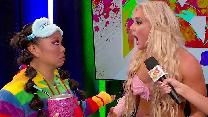 Нам показывают сегмент, как члена команды Chase U травмировали.Затем нас должен был ждать сегмент с Вэнди Чу, которую прерывает Тиффани, чью фамилию я вроде как нигде ещё не печатал, да? Вэнди просит прощения, Тиффани не прощает и продолжает своё интервью. В ответ Вэнди просто плещет соком в лицо Тиффани. Нас оставляют с визжащей Тиффани.