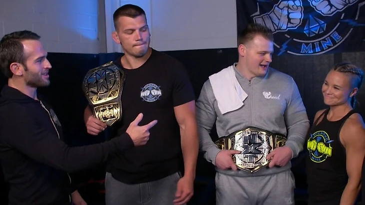 Ну а чего ждал Соло? Что он сейчас один троих вынесет и титул унесёт? Это работает так, только если ты - Хирому Такахаши, а ИВИЛА сопровождают не Грейсон и Трик, а Дик и Юджиро. В общем и целом матч на вечер мы скорее всего сюжетно, да простят меня читатели за оскорбление слова сюжетно, получили, что уже для NXT 0.2 неплохо. В целом промо неплохое, без особой страсти и запала, но талант у ребят есть, текст не вызубрен, даже эмоции есть. Оценка сегмента - 6.