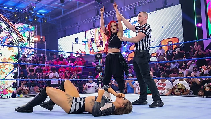 Знаете, вот надо было показать, что это NXT 0.2 и все засрать. Мэнди не выглядит и не выступает как Брок Леснар, она на эту роль не подходит, она не Ронда и не Утами. Оценка сегмента - 3.