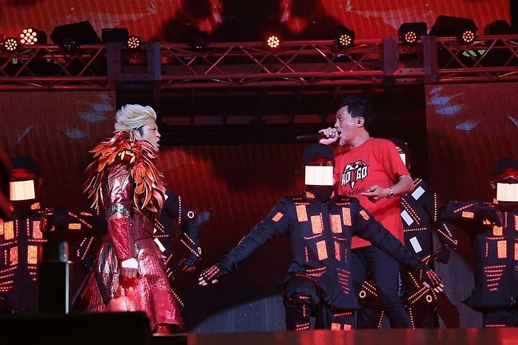 - Далее был небольшой перерыв на специальный танцевальный номер от коллектива CyberJapan Dancers. В качестве музыкального сопровождения был микс из музыкальных тем Кейджи Муто, Наомичи Маруфуджи и Санишро Такаги.