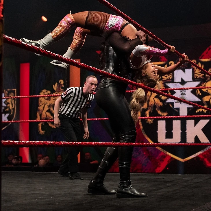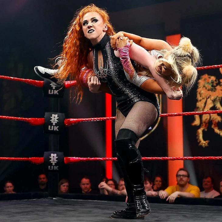 Насчет Лэш бессмысленно растекаться мыслью по древу, мы все всё про неё знаем, лучшее, что можно сказать о её навыках – они на уровне Найи Джекс в NXT. Да, это ЛУЧШЕЕ, я не опечатался. А вот мисс Грейс, которую я, быть может, когда-то где-то и видео, но о существовании которой забыл напрочь, меня просто поразила. У меня появилось ощутимое отторжение к ней уже во время выхода, когда оказалось, что она исповедует образ, являющийся чем-то средним между фейсом Сайей Бруксайд и Кэндифлосс (помните такую?). Кринж лютый. Но шут с ним, с выходом, вот ее ПЕРФОРМАНС – это действительно нечто. Это просто надо видеть. Я клянусь, за все время, что я смотрю NXT UK, я ни разу не видел настолько необученного исполнителя, каждое движение которого выглядит настолько неспортивно и не эстетично. А в сочетании с ноу-селлингом Лэдженд и ее упорным желанием травмировать соперницу эффект получается неописуемый. А самое забавное, что я даже DUD не могу поставить этому действуй, потому что, ну, камон, оно длится 4 минуты, что тут в принципе оценивать можно? Оно и к лучшему.