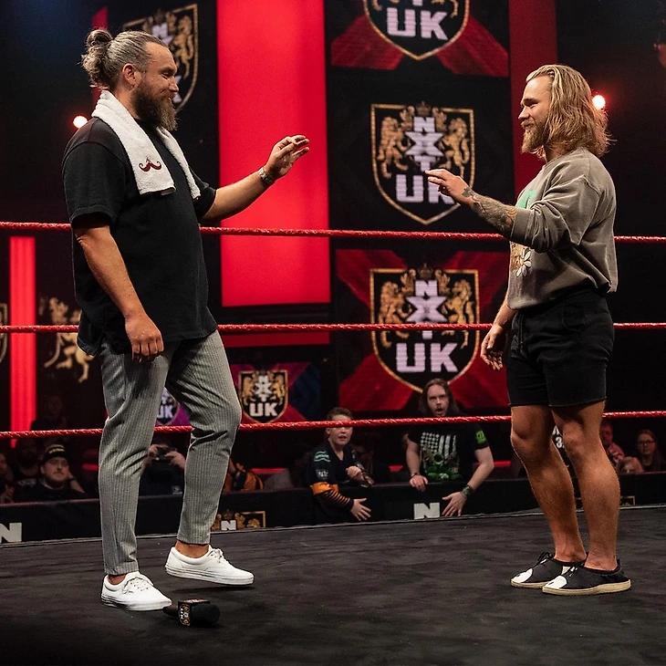 Трент Севен выходит на ринг в уличной одежде, зрители выражают ему свою любовь, и Трени с ринга отвечает им взаимностью. У Усача подготовлено важное объявление для всех фанатов NXT UK. Севен говорит, что в последние месяцы был честен с нами и с собой когда говорил, что не видит своего будущего после потери Командных Чемпионств. Срывающимся голосом Трент объявляет, что принял решение. Тем не менее, прежде, чем озвучить его, он приглашает Тайлера Бэйта присоединиться к нему на ринге. Бэйт, также в уличной одежде, тут же появляется в зале и спешить на ринг, сдерживая улыбку.