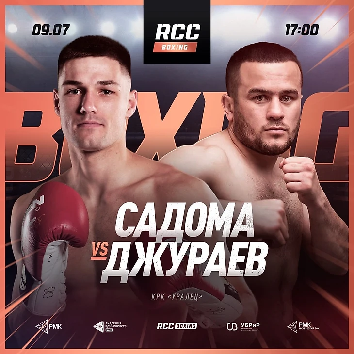 Бронзовый призер чемпионата мира Савелий Садома (дебют) и первый номер Узбекистана в первом тяжелом весе (до 90,7 кг) Фаррух Джураев (6-6-1, 1 КО) проведут поединок по правилам профессионального бокса на турнире RCC Boxing Promotions. Бои состоятся 9 июля на арене КРК «Уралец» в Екатеринбурге.