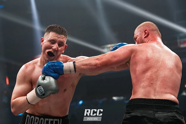 Не так часто бой тяжеловесов стоит под втором номером в файткарде, но сегодня именно такой случай. Российский боксер Александр Дорофеев и Виктор Чварков из Белоруссии вышли в ринг на турнире RCC Boxing Promotions, чтобы в восьмираундовом противостоянии определить лучшего.
