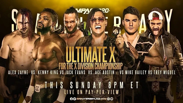 1) Эйс Остин против Алекса Зейна против Майка Бэйли против Кенни Кинга против Трея Мигеля против Эндрю Эверетта — титульный поединок за чемпионство Х-Дивизиона IMPACT по правилам Ultimate X Match.