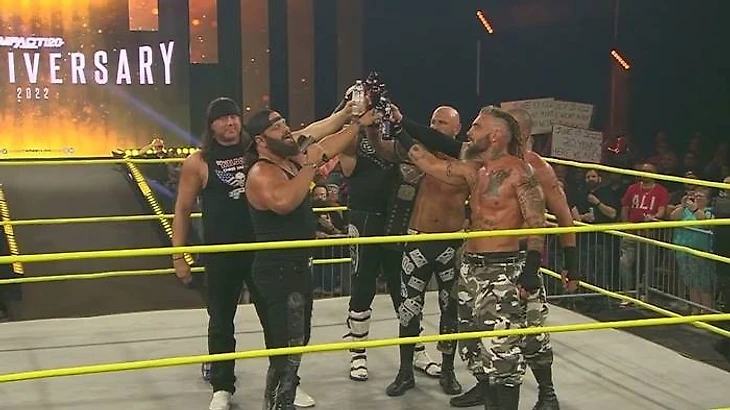 Личное мнение автора обзора: парад отсылок в честь 20-летия промоушена — почему бы и нет? Тем более когда это не просто уместно, но и добавляет к личной истории определённый антураж. Могу сказать честно — Янг и Александер могли показать лучше и больше, в этом нет сомнений. И этот матч по сути это только доказал. Оба из Канады, оба прошли не самый статусный путь восхождения через череду ошибок и промахов. Но одного это сломало и сделало подонком, а другого — героем для фанатов. Один стал аморальным «Маньяком Мирового Класса», другой — несокрушимым «Walking Weapon». А уж с отсылками на Кристофера Дэниелса, Курта Энгла, ЭйДжей Стайлза, Самоа Джо, Эбисса, Джеффа Джарретта — так и сразились прошлое TNA и будущее IMPACT. Бой выдался отменным, ибо в нём помимо типично классного перформанса от Джоша отличился и Эрик Янг — он показал что и в свои 42-43 года готов дать жару любому юнцу. Как физически со своей универсальной техникой, так и просто умным подходом к рестлингу, тем более со своей хильской харизмой. Хотя тут она мало как фигурировала именно как способ деморализации для Джоша, ведь как сам указывал Эрик — для него тут победа это дело личного принципа. Не просто показать как он гениальный злодей истории, а что он как оригинал TNA по-прежнему способен быть сильным чемпионом и актуальным топ-лицом даже в 2022 году. Что именно падение Джоша Александера покажет как он прав насчёт себя со своей историей восхождения на вершину. Отчего оба и дали достаточно жестокий бой друг друга, тем более что Джошу было что защищать — ибо он сейчас тут настоящее и будущее IMPACT, его новое лицо, лицо новой эпохи со своим наследием. Не обошлось в поединке и без овербукинга, особенно с повторными отсылками на Джеффа Джарретта и Курта Энгла. Но это тот редкий случай, когда овербукинг не портит восприятие матча, а только добавляет ему некоего шарма и брутальности, правда насчёт отсылки к обнажённому рингу — я не знаю когда такое бывало в рамках истории NWA-TNA, но вот чисто как фан-сервис со времён противостояния Джонни Гаргано и Томмасо Чиампы в NXT я заценил. В любом случае мэйн-ивент оправдал свою роль и значение — борьба поколений, личностное противостояние характеров, много отсылок на легенд прошлого и в целом отличный техничный перформанс с брутальным экшеном в целом, не без крови конечно, но с максимальной самоотдачей характеров.