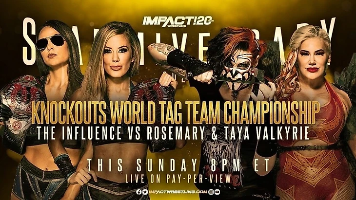 2) The Influence (Мэдисон Рейн и Тенилль Дэшвуд) против Таи Валькирии и Роузмари — титульный поединок за женские командные Нокаут-чемпионства IMPACT.
