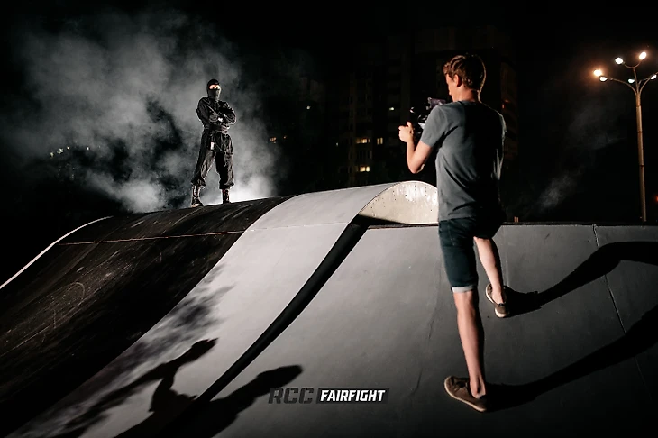 Ночью на споте снимали промо перед новым турниром RCC. Профессиональные кикбоксеры прямо на трамплинах спота проводили «бой с тенью» для видео-профайлов.