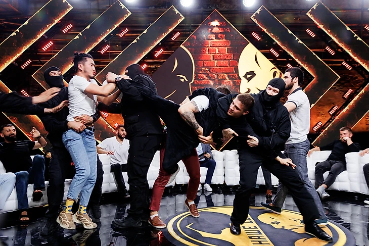 Конфликт Жени Ершова и Михаила “Лев Против” Лазутина всё больше накаляется, а появление в студии Назира “Волейболиста” Кишукова привело к потасовке с Ершовым.