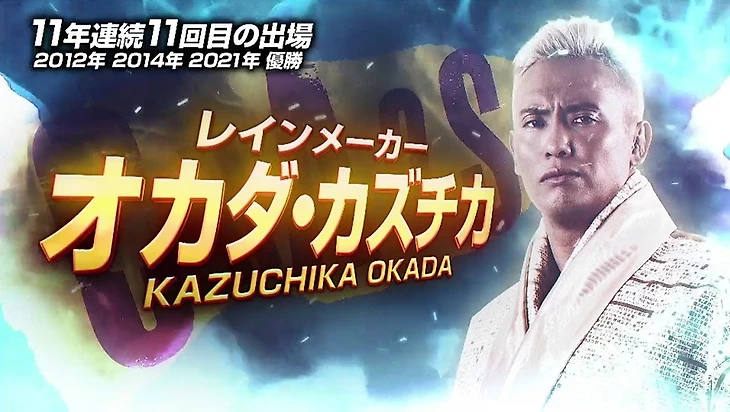 Казучика Окада (11 турнир, 11 подряд; победитель G1 Climax в 2012, 2014 и 2021 годах; статистика выступлений за предыдущие годы (победы-поражения-ничьи) — 65-24-4);