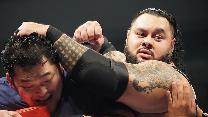 Четвёртый матч вечера: Bullet Club (Джей Уайт и Чейз Оуэнс) против Тамы Тонга и Джадо.
