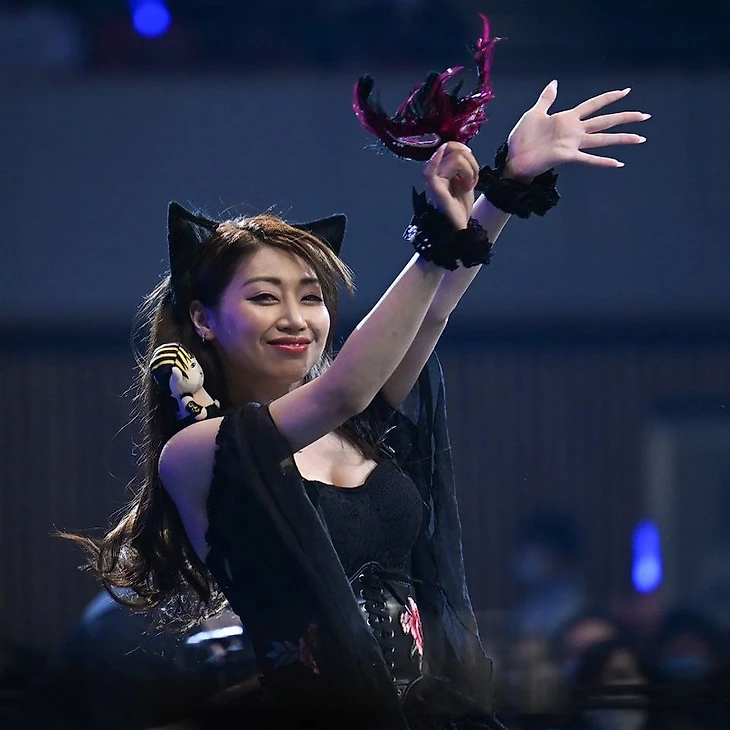 Таичи к рингу сопровождала несомненная Михо Абе. Раз уж Вы меня называете амбассадором NJPW Strong Spirits (игра для мобильных устройств), я буду приводить факты из интервью из игры здесь, в обзорах. О встрече с Михо в игре Таичи высказывается следующим образом: он увидел эту сексуальную женщину на ТВ, а потом рядом со своим домом. Они разговорились, понравились друг другу и привязались со временем. Однако на вопрос о романтических отношениях Таичи не отвечает. Ишии же очень волнуется о своих кулинарных шоу с Яно, он очень боится где-то налажать.