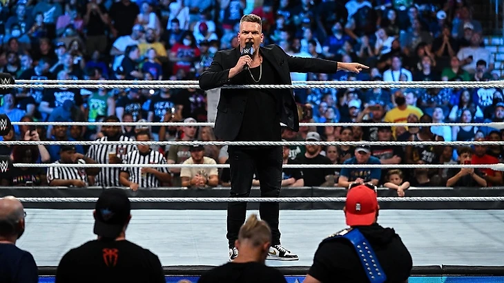 Пэт МакАфи с Майклом Коулом хотели что-то нам рассказать, когда Счастливый Корбин атаковал Пэта биг бутом. Нанеся еще несколько ударов, он ушел. МакАфи пришел в себя и отправился в погоню за «сукиным сыном» (как он сам сказал). Найдя Корбина за кулисами и увернувшись от удара стулом, Пэт попытался атаковать, Корбин стал отвечать, и оппонентов по PLE разняли закулисные работники во главе с Адамом Пирсом, отправив нас на очередную рекламу. После рекламы нам показали хайлайты всего этого еще раз, а МакАфи поднялся на ринг и взял микрофон. Перед тем, как он вернется на комментаторскую панель, Пэт хочет кое-что сказать этому придурку. На «Слэме» Корбин не сможет прятаться, атаковать со спины и использовать раздражение от подгузников как оправдание. Через 8 дней мужик сразится со здоровым, тупым, лысым ребенком, и после того, как нога МакАфи влетит в голову Корбина, для Бэрона все закончится. «Увидимся в Нэшвилле, сучка!» — подытожил МакАфи.