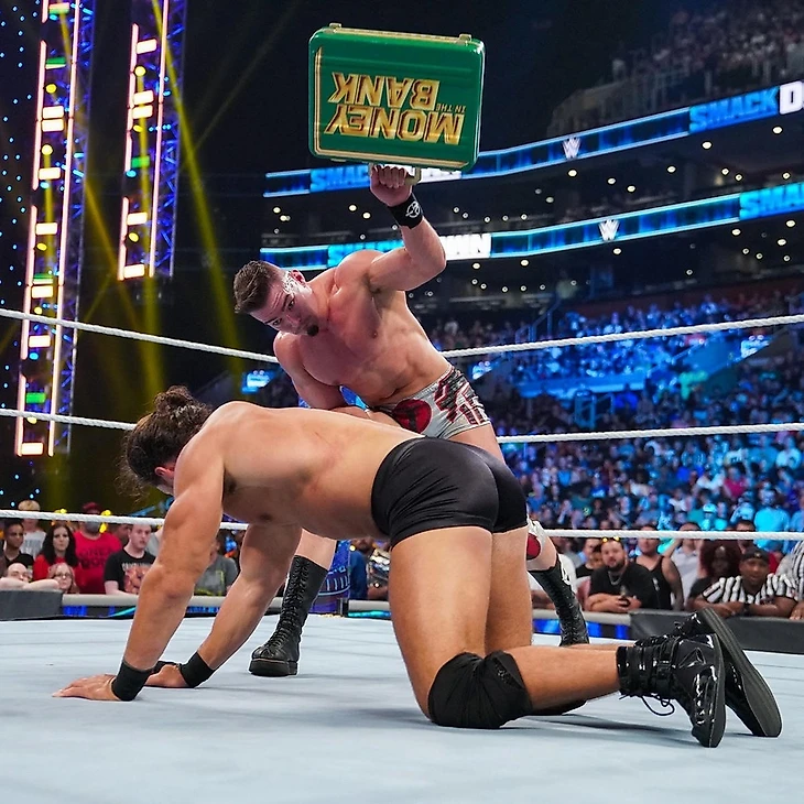 Затем на ринге появились Street Profits, которые поприветствовали местную публику, представились и сказали, что пришли поделиться кое-какой информацией. На следующей неделе в Нэшвилле они, прямо как «КейДи», выиграют чемпионство и сделают это максимально стильно. На SummerSlam мы увидим новых объединенных командных чемпионов WWE, потому что Street Profits are up, а дальше вы и сами знаете. Внезапно заиграла музыкальная тема Тиори, и он направился к четырехугольнику. Встретили «Мистера Money in the Bank» не очень тепло. Он предположил, что всем наплевать на потенциальные подвиги SP на «Cлэме», ведь всех беспокоит, чем будет заниматься на главном шоу лета Тиори. А он собирается вернуть себе чемпионство Соединенных Штатов, победив Лэшли, а затем удачно закэшить чемоданчик, став новым чемпионом мира. И Остину наплевать, на ком реализовывать контракт — на Леснаре или Рейнсе, ведь… И тут его прервала музыкальная тема Усо.