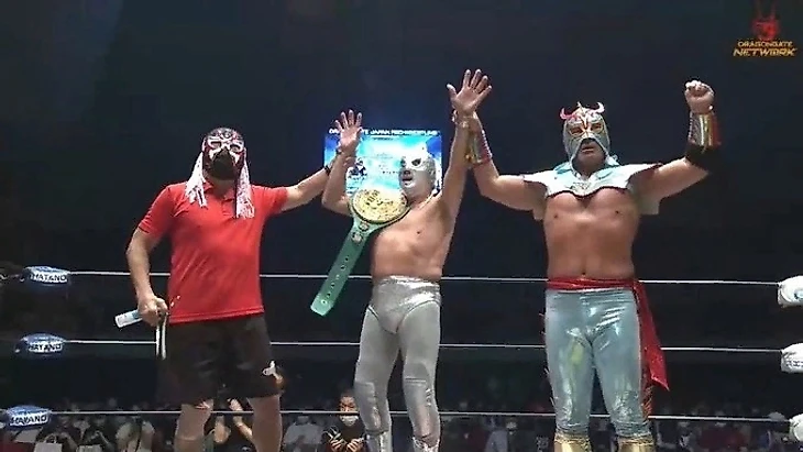 Матч закончен без результата, потому что вмешались Los Perros Del Mal de Japon.