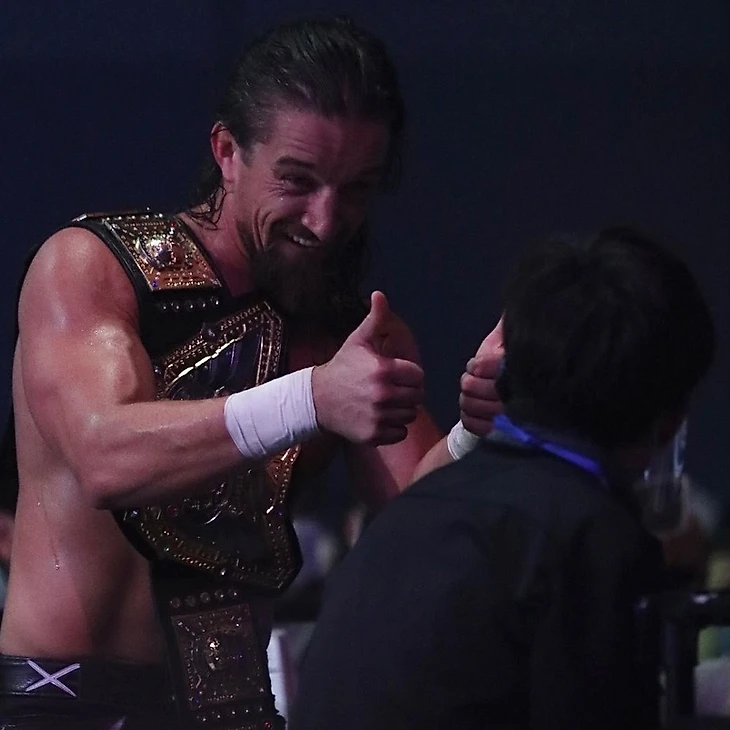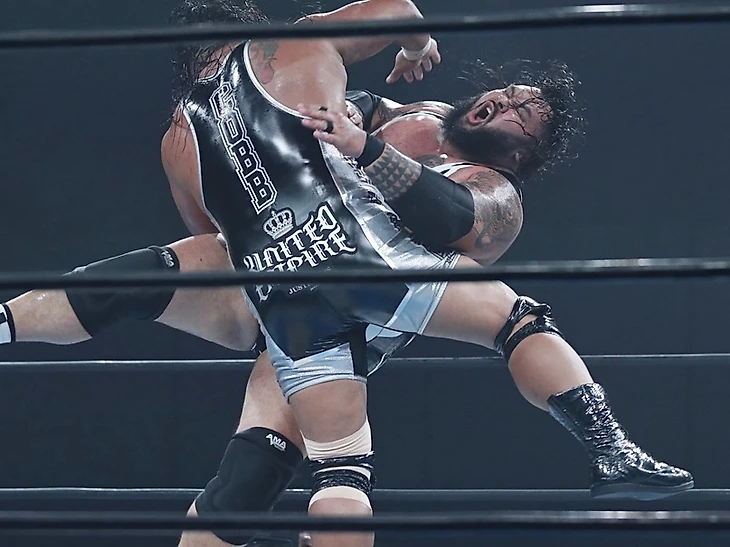ДЖОНА не хотел отдавать контроль, однако клоузлайн отправил его за пределы ринга. Вернувшись обратно, рестлеры синхронно провели друг другу раннинг кроссбади. Жестко… Переведя дух, Джефф провел пару атак в углу, но запуск в другой угол ДЖОНА реверсировал… получив еще одну атаку. В итоге Кобб шарахнул еще и pumphandle суплекс, который визуально дался представителю UE очень просто. Удержание до 2, и Tour of the Islands ДЖОНА избежал, за что получил дропкик. Вторую попытку «Тура» австралиец встретил гарпуном. но только до 2. Проведя несколько чопов, ДЖОНА забрался на второй канат, полетел… и Кобб поймал его в воздухе, переведя это дело в слэм. Мощно. Слэм, правда, ДЖОНА тут же реверсировал в сворачивание, но только до 2. Лэриэт последовал, и ДЖОНА решил провести суперплекс. Кобб, вроде бы, отбился от него, но со второй попытки суплекс с третьего каната все-таки прошел, и фанаты из Мацуямы даже ахнули, хотя им нельзя издавать звуки. ДЖОНА почти сразу же забрался на третий канат, шарахнул Torpedo, и этого хватило для победы.