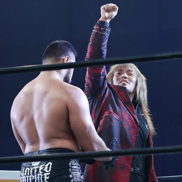 А тем временем к рингу выбежали еще 2 судьи. Первый вылетел, когда Тана направил Того прямо в него, а второй пал жертвой Magic Killer, который Хироши провел визави. Того и ШО вместе попытались атаковать Хироши гаечным ключом и удавкой соответственно, но Эйс выписал им по лоу блоу. ИВИЛ же провел удар ниже пояса Танахаши, но отсчитать удержание было некому, ибо все четыре рефери, обслуживавшие шоу, были без сознания. Ред Шуз наконец пришел в себя и отсчитал удержание после Darkness Falls, но только до 2. Everything is EVIL Танахаши реверсировал в Ground Cobra (сворачивание), и это до 3. ИВИЛ стал выговаривать судье, затем выкинул молодого льва, оказывавшего помощь Хироши, за пределы ринга, хотел атаковать, но получил еще один лоу блоу. В своем послематчевом промо Танахаши поблагодарил фанатов за то, что они пришли на шоу и остались на арене, несмотря на поздний час. Такие моменты очень важны для Хироши, ведь подобная поддержка публики помогает справляться со всеми даже самыми сложными моментами в карьере. Танахаши попросил фанатов продолжать смотреть рестлинг и улыбаться лицом и сердцем, продолжая поддерживать рестлеров. После этого он дал «концерт» на воображаемой гитаре, за что извинился. Все-таки сам сказал, что времени уже много, а затем задержал фанатов аж на 3 песни. Просто увлекся как-то. Поблагодарив Мацуяму, Танахаши попрощался с фанатами, признавшись в любви.