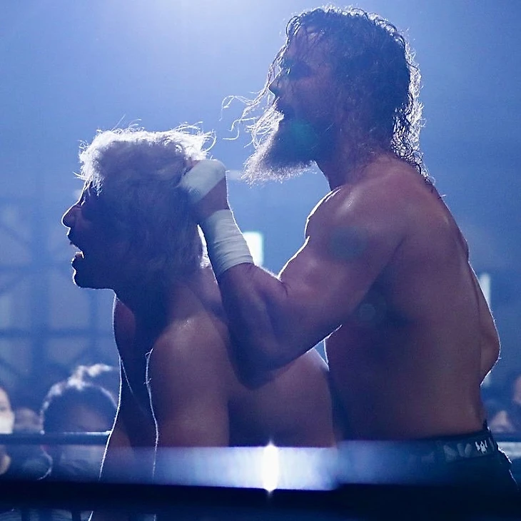 В NJPW рестлеры еще не встречались, но у них есть предыстория друг с другом. В 2018 году ДЖОНА победил на шоу PWG и повторил этот успех в мае этого года на ивенте HOG… Но проиграл Джеффу на следующей день на Warrior Wrestling 22. В общем, счет 2:1. Перед матчем Кобб в соцсетях написал, что если они с ДЖОНОЙ сломают ринг, Джефф не будет испытывать чувство вины. Стартовые лок-апы не позволили никому захватить контроль, и тогда рестлеры стали обмениваться шоулдер тэклами. После нескольких столкновений, рестлеры разогнались и провели еще более жесткие синхронные шоулдер тэклы, которые отправили обоих на рингсайд. Здесь они разогнались и еще раз столкнулись тэклами. Кобб был немного сотрясен, и ДЖОНА воспользовался этим, шарахнув шоулдер тэкл еще и с апрона, после чего Джефф улетел куда-то к баррикадам. Тут австралиец атаковал его калиткой от ограждения и вернулся в четырехугольник. Кобб успел прервать отсчет рефери и тоже вернулся в ринг, где ДЖОНА продолжил наносить ему удары. Перетерпев все это, Кобб начал наносить собственные чопы и страйки.
