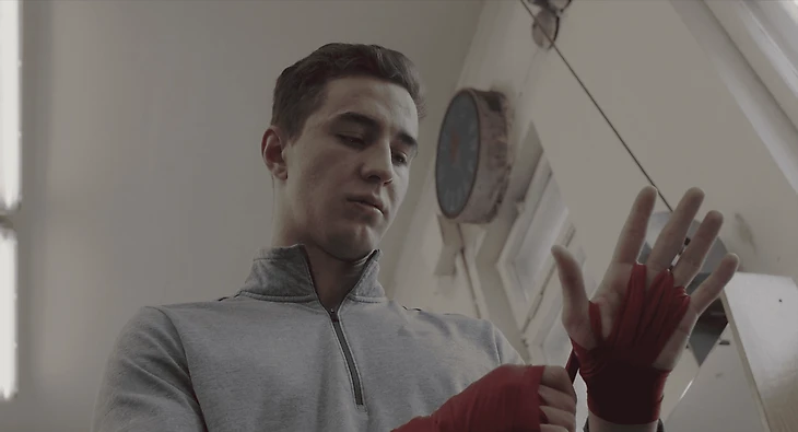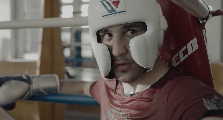 После идут кадры: Шамиль молотит по груше. Портрет с черной лентой — тренер орет: «Выбор! Выбор!». Миша страдает на полу, терпит. «Пять! Четыре! Три! Два! Один!». Вода.