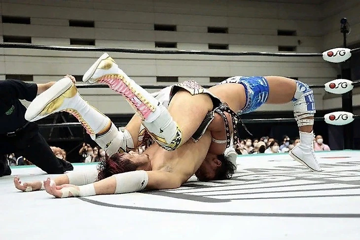 Концовка была огненная, мне всё ещё нравится, что летящее колено приносит неприятности Киëмии. Маса, который после неудачного Backdrop опять взялся за ногу. Ну и ноуселл Киëмии со вторым камбеком был хорош, по эмоциям все эти моменты и нирфолы были хороши, но опять же Кайто забыл про ногу, а в таком матче это как-то странно, когда ты вроде её аккуратно селлишь, уделяешь ей внимание, а на камбеке забываешь.